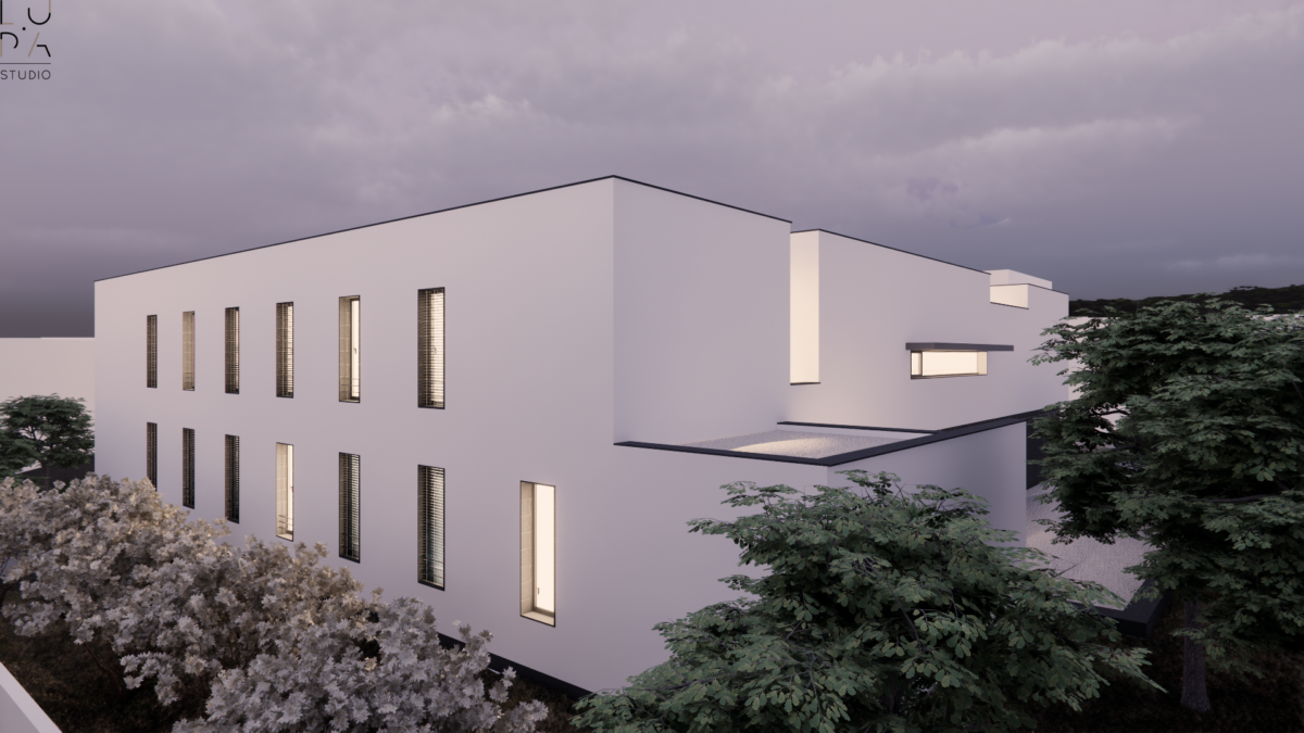 Partindo de uma ideia inicial de organização funcional e formal de volume em “O” distribuíram-se os programas pelos 2 pólos, em dois pisos sobrepostos.